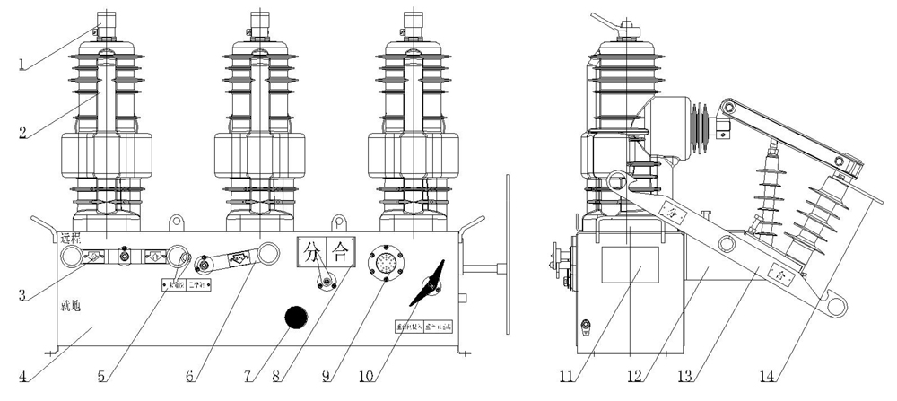 6.采用全密封結(jié)構(gòu),操動(dòng)機(jī)構(gòu)安裝在箱體內(nèi),密封性能好,提高了防潮、防銹性能。箱體內(nèi)無(wú)變壓器油、無(wú)六氟化硫氣體,滿足無(wú)油化改造和環(huán)保的要求。