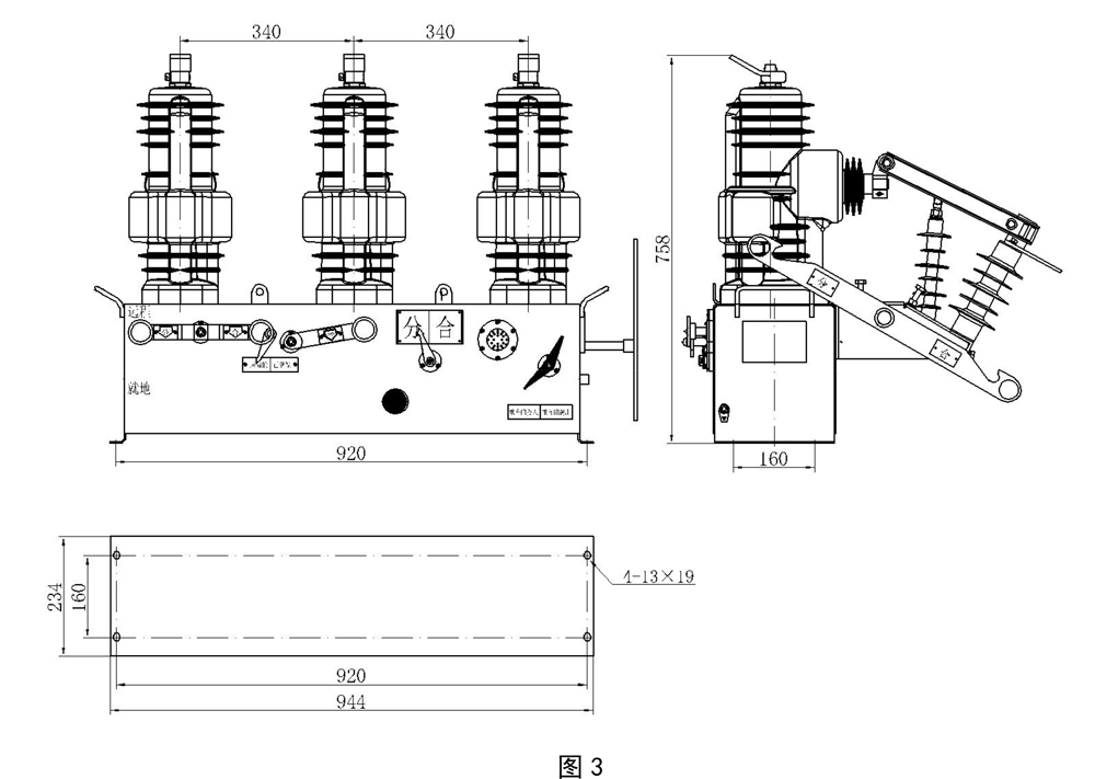 帶隔離開(kāi)關(guān)外形安裝尺寸