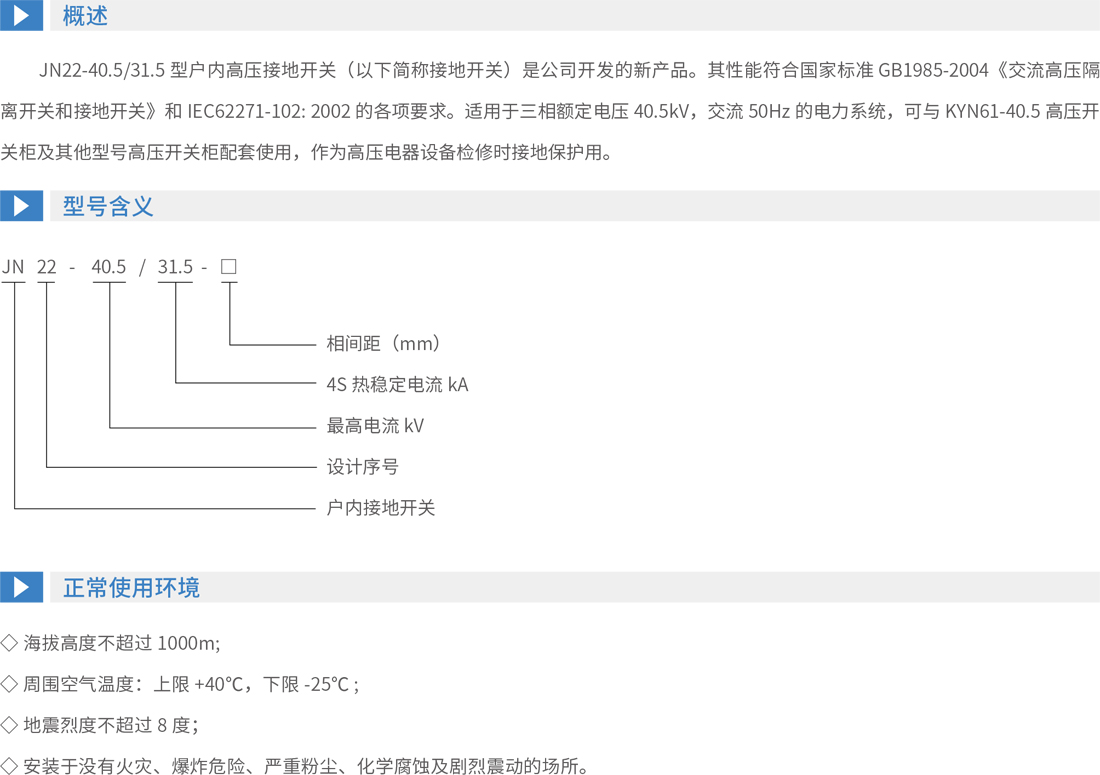 JN22-40.5/31.5戶內(nèi)高壓接地開關(guān)