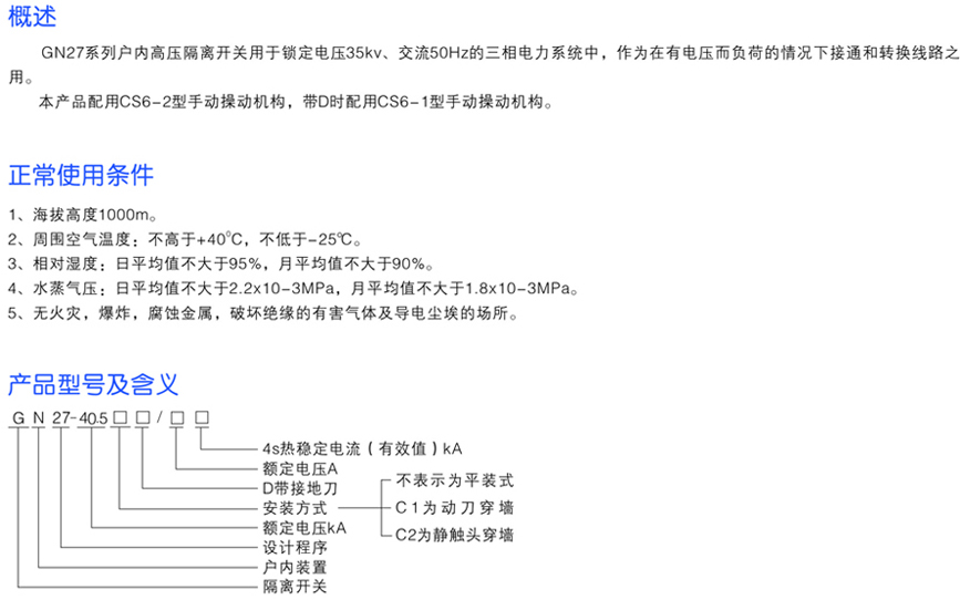 GN27-40.5戶內(nèi)高壓隔離開關(guān)