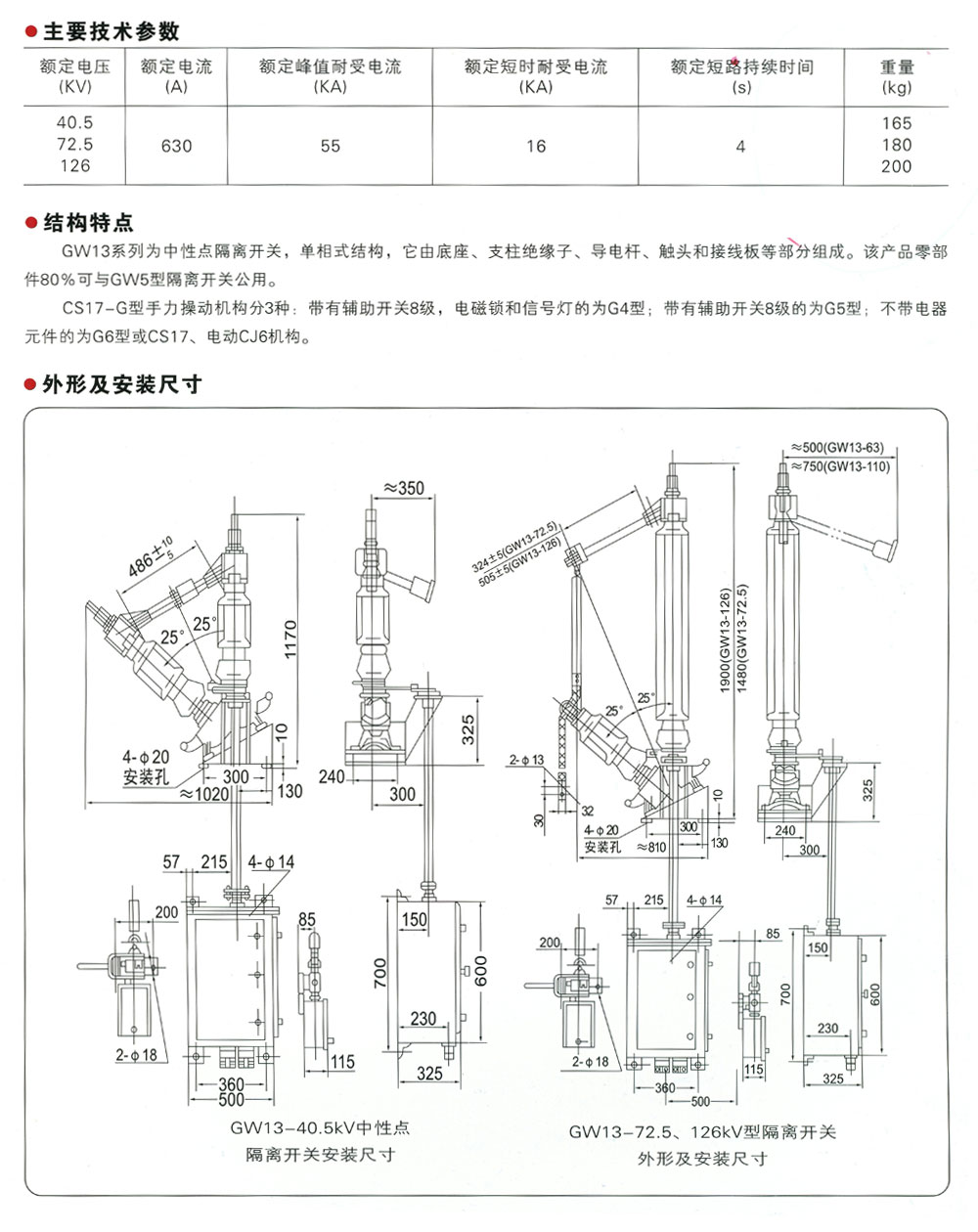 1.GW13中性點(diǎn)隔離開關(guān)由底座、支柱絕緣子、導(dǎo)電排、觸頭、接線板等組成。