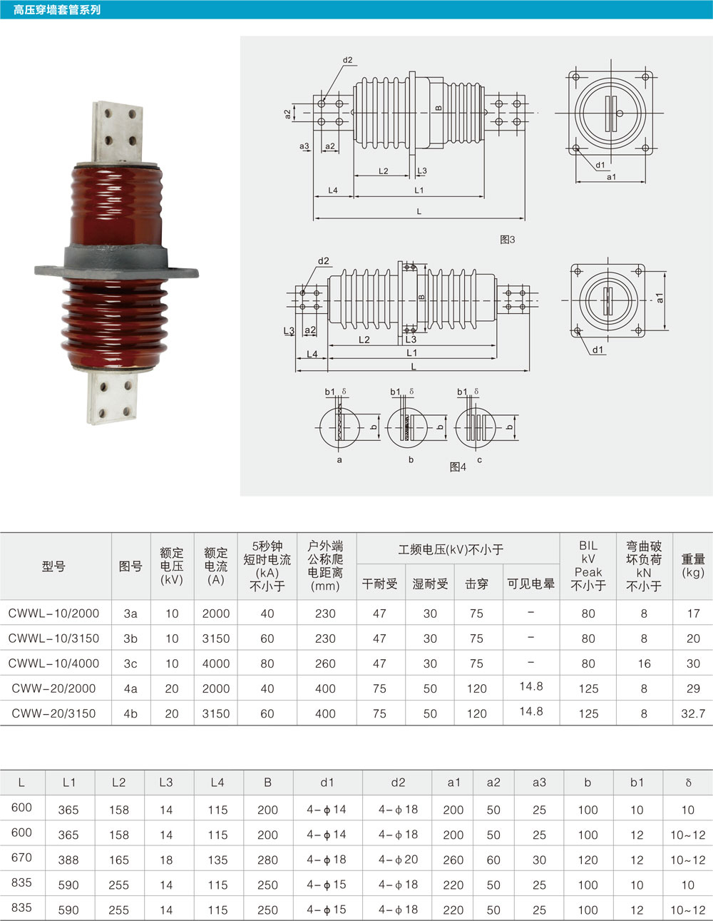 CWWL系列陶瓷高壓穿墻套管系列